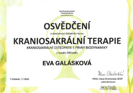 Když jsem se v roce 2023 přihlásila do výcviku kraniosakrální osteopatie, chtěla jsem především pochopit, jak ulevit bolestem svého těla. Mým záměrem ale nebylo jen pomoci sobě – chtěla jsem také podpořit své nejbližší, především rodinu. Pokud vaše dítě něco bolí, jako rodič se přirozeně snažíte najít co nejšetrnější a nejrychlejší cestu k úlevě. Většinou jsem sahala po bylinkách – jak mě to učila moje babička.